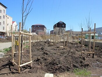 В посадке деревьев для создания сквера на улице Абдулхамида Юсупова в районе Сепараторного поселка приняли участие во главе с председателем собрания Еленой Кожухиной депутаты Советского района города Махачкалы: Хиби Алиев, Руслан Луговой и Расул Абсаламов.