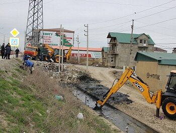 Мужская часть администрации Советского района сегодня трудилась на улице Новокаякентская, что расположена вдоль федеральной трассы Ростов – Баку. В очередной раз для наведения санитарного порядка на обозначенном месте привлекли специализированную технику. Проведена работа по выравниванию насыпи земли и вычищена прилегающая к мусорному баку (лодка) территория. Также муниципальными служащими ликвидирована несанкционированная свалка бытовых отходов и вывезены спиленные ветви деревьев. В течении нескольких часов участок был вычищен. Одновременно со сбором отходов, рядом проводилась работа по очистке местного канала.